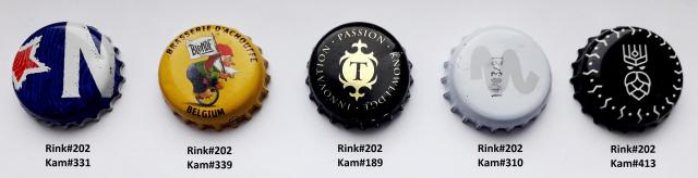 Konkretus kamštelis identifikuojamas pagal rinkinio ir kamštelio numerius. Kamšteliai naudoti, nuimti nuo butelių. Galima rinktis bet kurį kamštelį arba visą rinkinuką. Žiūr. foto