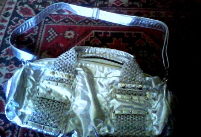 Talpi, blizgi sidabrine rankine.Su dviem trumpom rankenom ir viena ilga nusegama rankena. Tik kelis kartus nesiota....