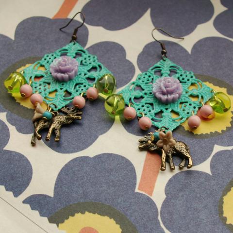 Žali auskarai su briedžiais
