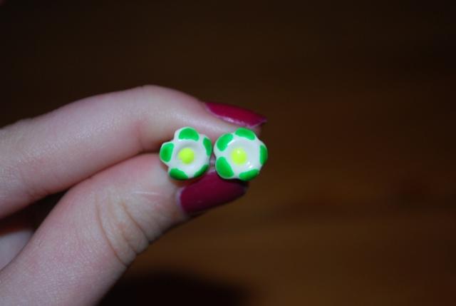 Žali, tamsoje šviečiantys auskarai iš parduotuvės INDIJA. plastmasė