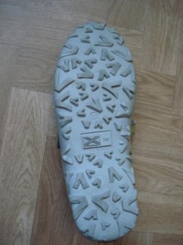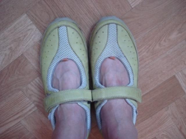 Keletą kartų avėti, todėl šonai gal šiek tiek nešvarūs. Tačiau labai patogūs, užklijuojami lipduku. Nežinau kokia medžiaga, bet kojos juose neprakaituoja. Pirkti ,,Batų kalne''. 39 dydis.