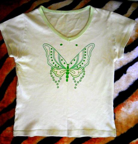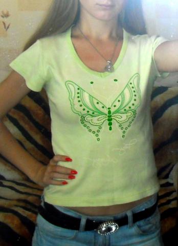 Maikutė šviesiai žalios spalvos. Su drugeliu. Nešiota, bet nesunešiota :) Dydis S. Tinka ir M. Siunčiu ir į kitus miestus. Norint įsigyti, rašykit arba skambinkit telefonu 865391360