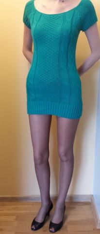 Žalia megzta suknelė su šalikėliu. Pirkta prieš kelis mėnesius, tik kartą dėvėta. Ilgis 74 cm. XS dydis. kadangi šiemet žaliojo arklio metai tai suknytė labai madinga.