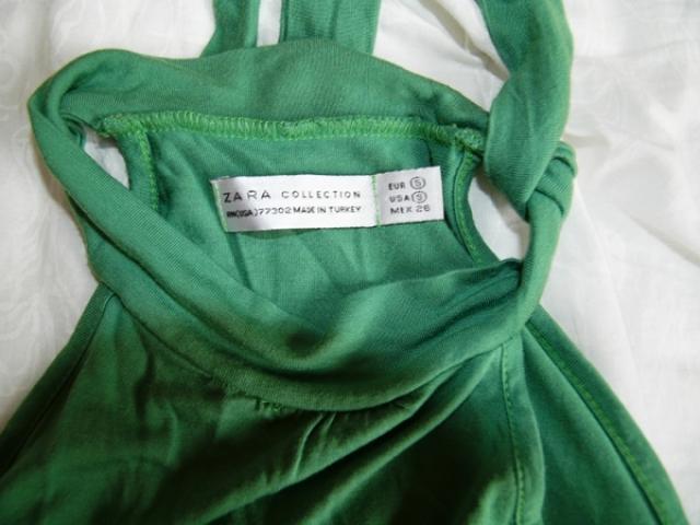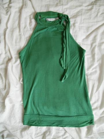Labai gražios sodriai žalios spalvos ZARA palaidinė. Kaklo šone susiriša bantukas (man, deja, per skubėjimą nepavyko dailiai jo surišti) Medžiagytė tampri, bet glaudžiai priglunda prie kūno ( kas man nebelabai patinka), tačiau medžiaga labai švelni