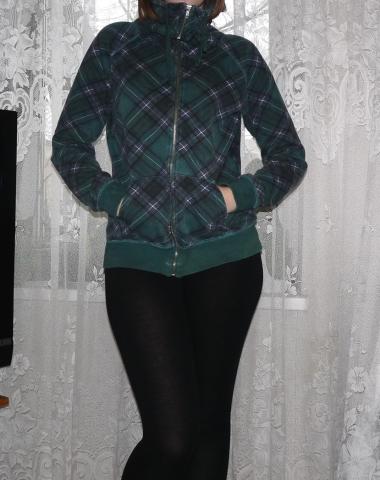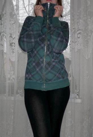 Žalsvas džemperis. Nemeluosiu, tikrai ilgokai nešiotas :) bet dar tolesniam nešiojimui irgi tinkamas. šiltas, su ilgu kaklu, užsegamas.