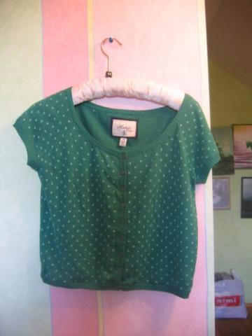 Labai puikus M dydžio megztukas trumpom rankovėm ir šiaip pats trumpas[toks sakykim bolero stiliaus]. Siunčiausi iš interneto, mielu noru nešiočiau pati, bet kažkaip labai negražiai krenta ant manęs. VIenoje vietoje suplyšę[nes labai plona medžiaga],