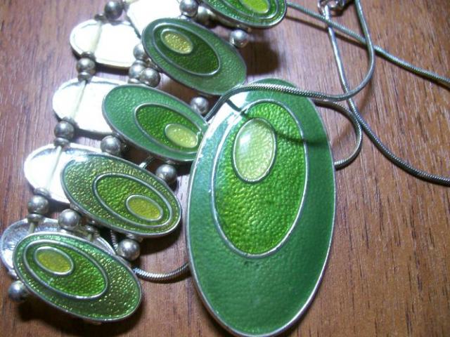 Išsimainiau. Irgi ieškojau kažko prie žalios suknelės. Pakabuką nešiojau gal kelis kartus. Labai žaviai atrodo, forma gulsčia, o ne stačia :)