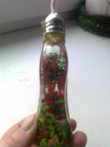 labai grazi nedidele aliejine zvake viduje yra priberta spalvotu akmenuku,ir zoleliu