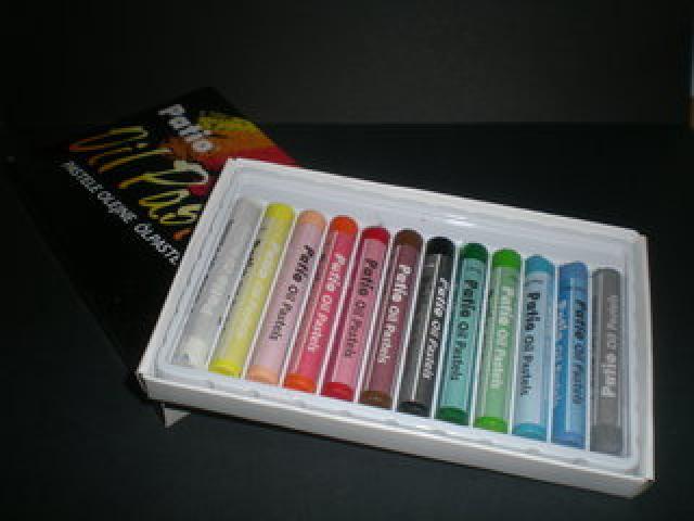 Kai kurios spalvos vos vos naudotos. Nors rašo, kad tai aliejinės pastelės, tai labiau panašu į kreideles (aišku, nebandžiau naudoti su terpentinu, negaliu tiksliai pasakyti). 12 spalvų.