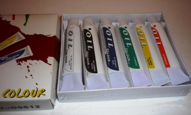 Nauja pakuotė aliejiniu dažų, penkios tubelės po 12ml.