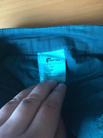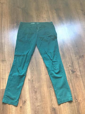 Nedaug dėvėtos žalios kelnės. Šiek tiek platintos ties klubais