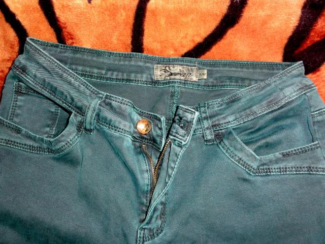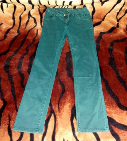 Tiesios žalios kelnės. Medžiaga panaši į džinsą. Nė karto nedėvėtos, tik etiketės jau nuimtos. Ilgis: 104 cm Liemuo: 40 cm x2 Šiek tiek tempiasi. dydis rašo XL/42, bet labiau atitinka L ar M/L. Priekyje ir gale kišenės. Kaina + p.i.