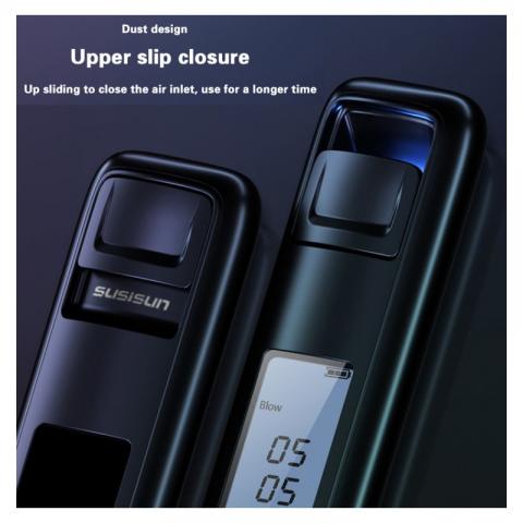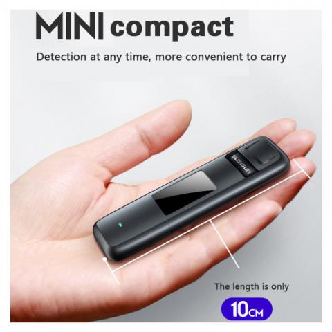 APRAŠYMAS: SUSISUN Alkotesteris su Oro putimo jutikliu. Sumontuotas ilgaamžis elektrocheminis jutiklis, todėl tinkamas darbdaviams. Šis nedidelis nekontaktinis kvėpavimo analizatorius gali greitai apskaičiuoti alkoholio koncentraciją kraujyje. Nereikia jaudintis, kad pamiršote įdiegti purkštuką ar atsiras sanitarinių problemų, o jūs galite pūsti tiesiai į testerio inhaliatorių be kandiklio, o tai yra patogiau ir saugiau. Galite pasiimti su savimi ir išbandyti savo BAC bet kada ir bet kur. FUNKCIJOS: