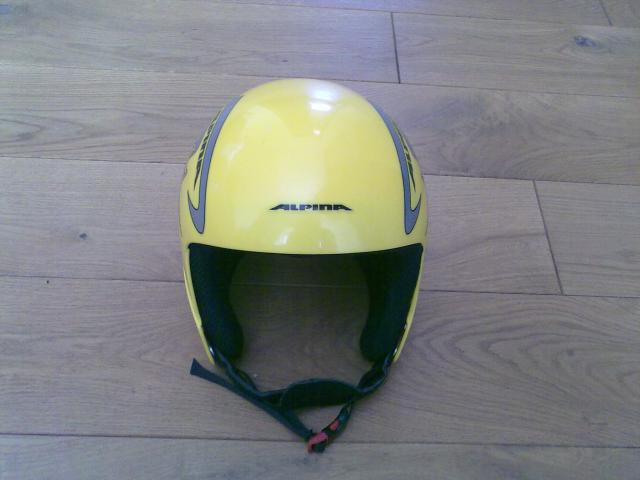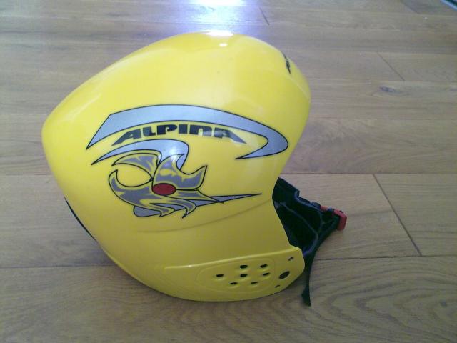Labai mažai naudotas geltonos spalvos ALPINA slidinėjimo šalmas. Šalmas tinka tiek vaikams, tiek suaugusiems, nes yra lengvai reguliuojamas gale. Beveik naujas, su keletu smulkių įbrėžimų. Šiltas. Dėl kainos galima derėtis.
