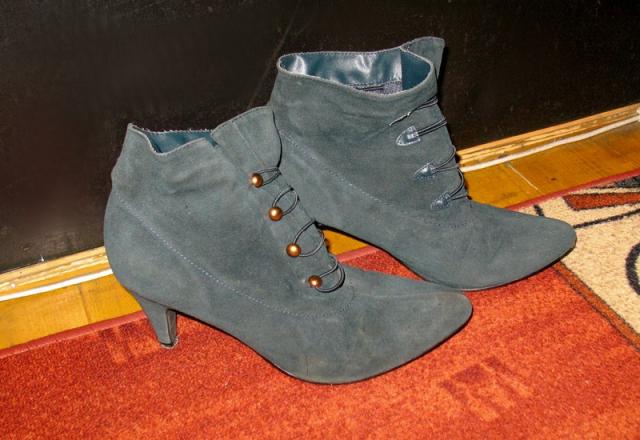 Labai patiko, kai pirkau, bet nelabai randu, kur prisiderint, tai tenka perleisti kitai. Tamsi žalsvai mėlyna spalva (JIE TIKRAI NĖRA TOKIE NUBLUKĘ AR DĖMĖTI, TAČIAU MANO FOTIKAS YRA LABAI DURNAS DAIKTAS IR DARO KĄ NORI) su aukso/bronzos spalvos sagutėmis(tik dėl grožio). Vidus labai labai minkštas, nes ten kažkoks storas ortopedinis padas. Į pamušalą aplink kulkšnį buvau įsivėrus virvutes, kad galėčiau užrišti, nes norėjau, kad ant kulkšnies būtų labiau prigludę, bet jas galima išsitraukti, jei nepatiks.