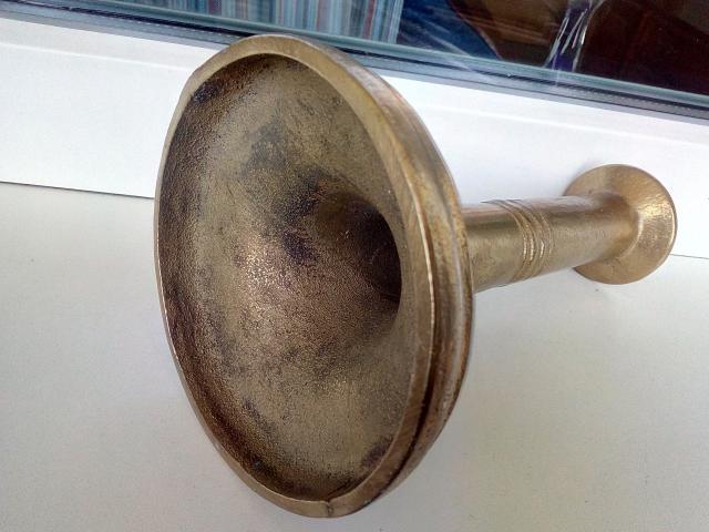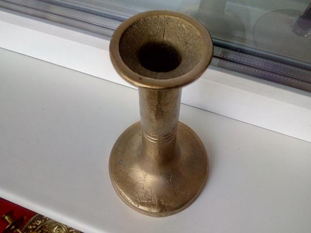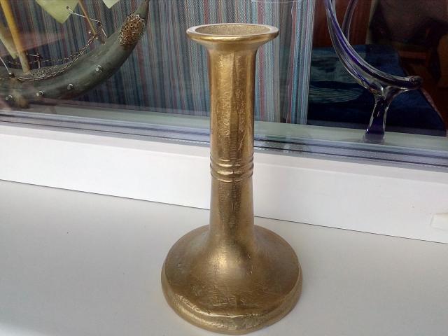 Žalvarinė, storasienė, sunki, masyvi vienos žvakės žvakidė.