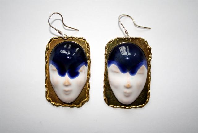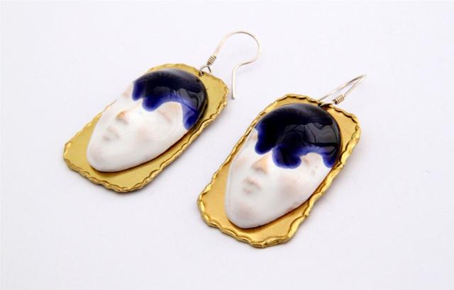 Žalvariniai ranku darbo auskarai su keramika. Iverimas sidabrinis. Kaina 45 lt emeil: my.magic.face@gmail.com