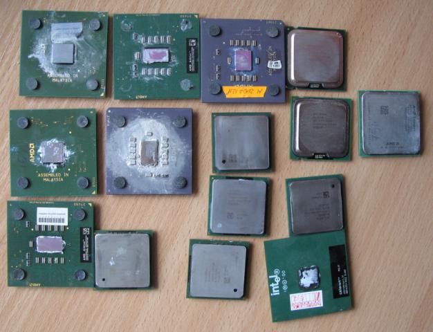 Įvairūs AMD ir Intel procesoriai. Socketa A (S462): AMD AthlonXP 2000+ AMD AthlonXP 1600+ AMD Duron 1,3 GHz AMD Duron 700 MHz Socket 478: Intel Celeron 1,8 GHz Intel Celeron 1,7 GHz (2 vnt.) Intel Celeron 566 MHZ Socket 370: Intel Celeron 633 MHZ Socket 775: Intel Celeron D 331 3,06 GHz