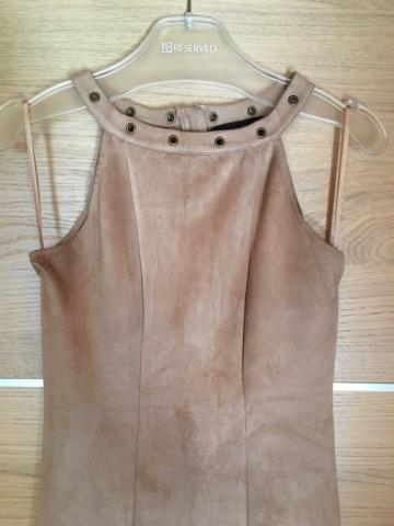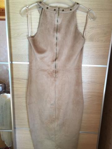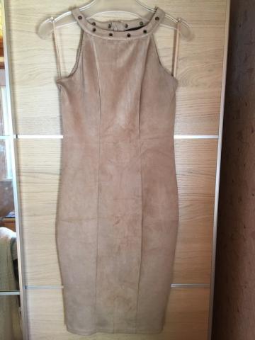 Smėlio spalvos suknele iki keliu. S/M dydis