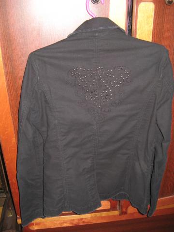 šiek tiek nešiotas, labai visiems patinkna aplikacija ant nugaros ...storokas juodas džinsas.
