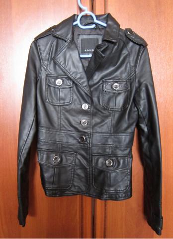 Siunčiu į kitus miestus nemokamai neregistruotu paštu. Dirbtinės odos Amisu firmos švarkelis. Pečių plotis (nuo peties iki peties): 38cm Krūtinės apimtis: 88-90cm Liemens apimtis: 74cm Visas ilgis: 55cm Rankovės ilgis (nuo peties iki rankovės galo): 63cm