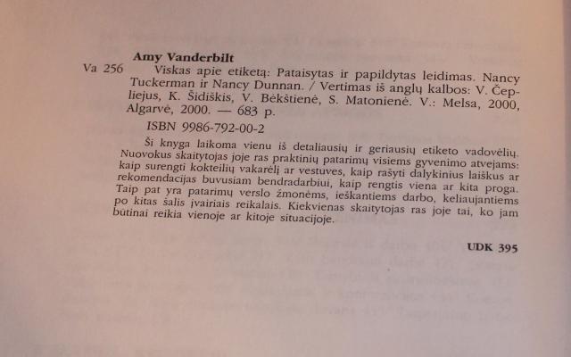 Amy Vanderbilt "Viskas apie etiketą"