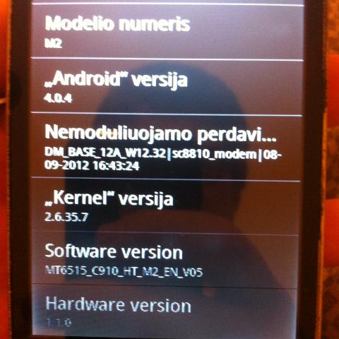 Geras android 4.0. Priekine kamera 0,5 mp, galine 3,2, isideda 2 korteles, lietuviu kalba. bukle 9/10, ymano nr ;869170966. Pirkau per interneta uz 350, nera jokiu defektu viskas normalei, rasykit jai susidomejot.