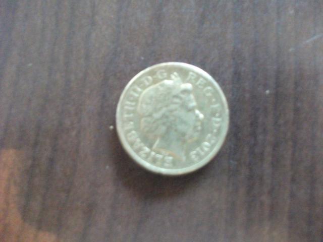 anglijos 1 poundo moneta su Elzbietoas atvaizdu.2013 m