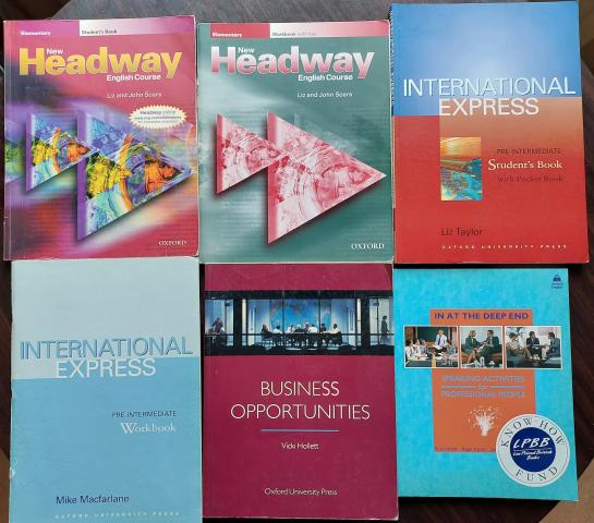 Anglų kalbos knygos Headway English Course Elementary. Liz and Hohn Soars 4 Headway English Course Elementary Workbook. Liz and Hohn Soars 4 International Express Pre-Intermediate. Lyz Taylor 4 International Express Pre-Intermediate Workbook. Lyz Taylor 3 Business Opportunities. Vicki Hollet 8 In at the Deep End. Speaking Activities for Professional People. Vicki Hollet 3 Longman Active Study Dictionary of English New Edition Lietuviški angliški pasikalbėjimai turistams Anglų kalbos mokomasis žodyn