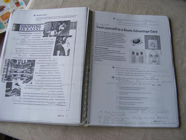Kažkada įsigijau anglų kalbos mokymuisi. Daugiau nebeprireiks. Daug skirtingų temų ir įdomios informacijos. Tiks turintiems šiek tiek anglų kalbos žinių. Pradedantiesiems reiktų ieškoti paprastesnės literatūros. Galiu prideti keletą lentelių apie laikų sudarymą ir pan. (paskutinė foto).