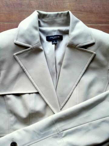 Jokių defektų, dėmių, labai geros būklės Ann Taylor švarkelis. Pirktas iš originalios parduotuvės internetu. Šviesiai kreminės spalvos, liemenuotas, su pamušalu. Kišenės dėl grožio.