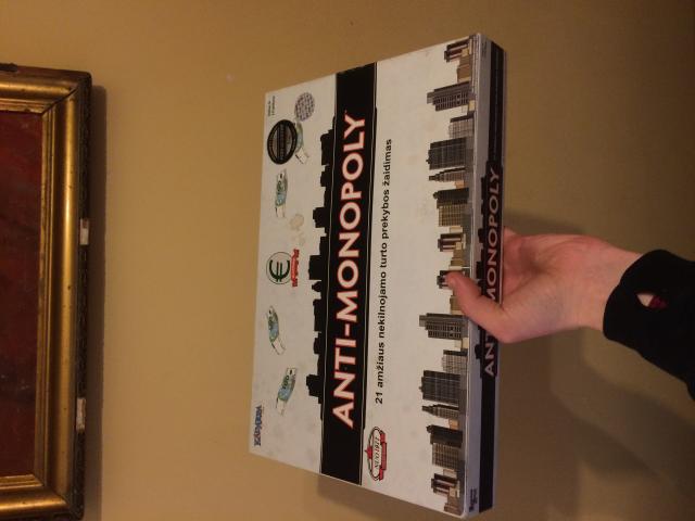 Kadangi aprašymas čia netelpa, keliu nuorodą: http://www.kadabra.lt/antimonopolis Žaidimas yra komandinis ir panašus į monopolį, tačiau turintis kitokių subtilybių ir principų, kurie dalinai prieštarauja Monopilinei idėjai. Karolis 865074738 Būklė: Puiki, dėžutė apibraižyta,su lipdukais,yra kavos dėmė, bet vidus praktiškai kaip naujas, iš dalies net nepaliestas žaidimas, imi ir žaidi. 9/10.