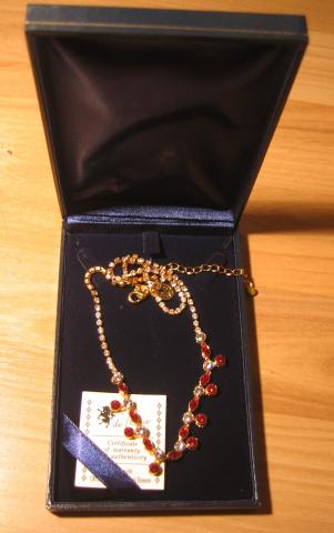 Informacinis lapelis: Kristalai, teigiamos energijos įtaka. šis stilingas vėrinys yra pagamintas su kristalizuotais (CRYSTALLIZED TM) Svarovskio elementais, paauksuotas ir antialerginis. Dėžutėje yra speciali servetėlė nuvalyti vėrinį, jei apsineštų. Kaina +siuntimas