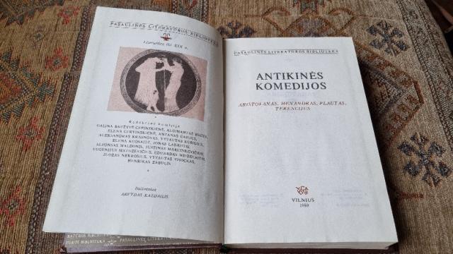 Šiame tome pateikiami žymiausių antikos komediografų kūrybos pavyzdžiai - senovės graikų dramaturgų Aristofano "Demesys", "Taika", "Varlės", "Plutas", Menandro "Bambeklis" ir romėnų rašytojų Plauto "Vergas apgavikas", "Karys pagyrūnas", "Dvyniai", "Amfitrionas" bei Terencijaus "Broliai". "Taika" ir "Bambeklis" lietuviškai skelbiama pirmą kartą.