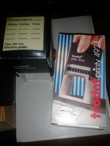 Klasikinio dizaino Trodat 4924 teksto spaudo korpusas. Maksimalus spaudo plotas 40 x 40 mm.