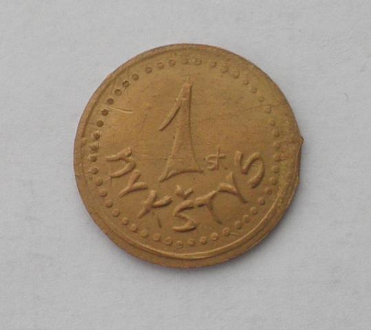 Anykščių miesto simbolinė valiuta - 1 Nykštys.
