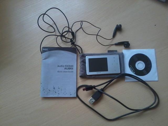 Komplekte ausinės, USB laidas, dėkliukas/maišelis, instrukciju vadovas, diskelis. Gamintojas Apacer MP3 PLAYER AU851 2GB Išorinis srovės šaltinis Li-Ion baterija Matmenys (Plotis) 86 mm Matmenys (Aukštis) 50 mm Matmenys (Storis) 7.8 mm Svoris 0.042 kg Spalva Sidabrinė Atmintis 2 GB