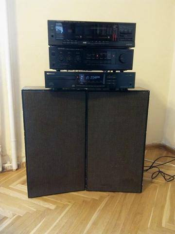 Komplekte: Kasečių grotuvas Kenwood KX-57CW ( 2 kasečių ), CD grotuvas Kenwood DP1080, stiprintuvas Kenwood K57 ( 2 išėjimai); ir dvi restauruotos oldschool kolonėlės. Skamba nuostabiai, tik mažai naudojame. P.S. Kasečių grotuvo dešinė pusė kartais "tempia". Su kaire - viskas gerai. Viso komplekto kaina - 150 eur. : ) Perkančiam pridėsim krūvą kasečių ( tarp jų Balius 1-2 :D, tačiau yra ir perrašytų Bowie, Radiohead, etc.). Pridedu video kaip groja: https://youtu.be/Zc6s2n2Eo20 Skambinkite 869927865