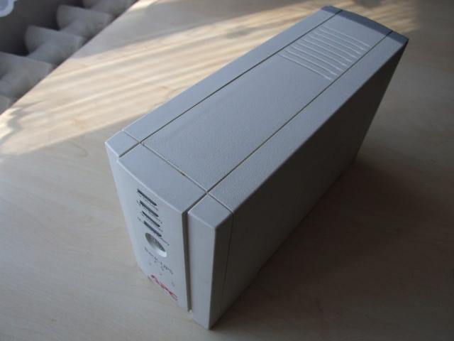 APC UPS'as (nepertraukiamos srovės šaltinis kai dingsta namuose elektra); max 300 W galingumas viskas kišasi kartu į UPSą: monitoriaus maitinimas, PC bei dar yra lizdas ir spausdintuvui, visi kabeliai. Dingus elektrai tempia 9-10 min išmaitina moniką ir PC.. Naudotas kokius 8 mėn. Yra puikios būklės, saugotas ir nesudrožtas, akumas kaip naujas.