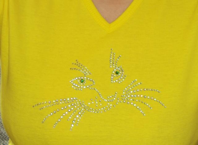 Kristalu aplikacijos, klijujamos ant drabuziu, galeciau uzklijuoti ant norimo dydzio ir spalvos drabuzio, galima padaryti ir pagal norima piesini. Grazu ir originalu!!