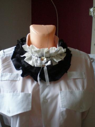 Gražiai atrodo su vienspalviais marškiniais.Primena senovinę apykaklę.