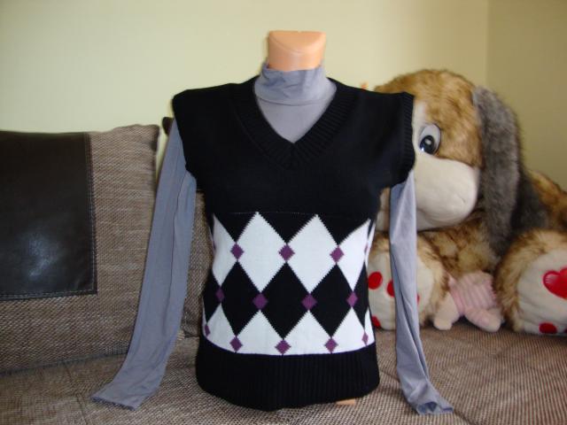 Pora kartuku vilketa ir tai labai nedaug apynauje,stilinga silta liemene.Sakyciau dydis s,m .Klauskite ismatavimus.Tik pardavimas