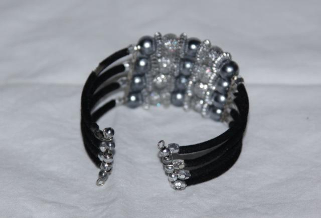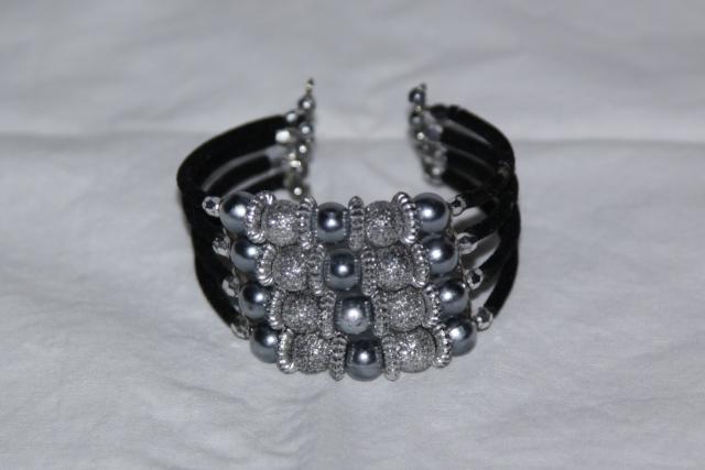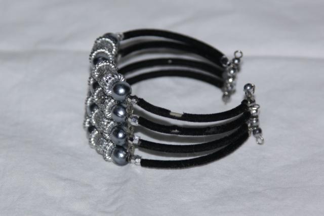 Juoda apyranke su blizganciais karoliukais,tinka beveik visiems :} kai kurioje vietoje siek tiek pagadinta, bet nelabai matosi.