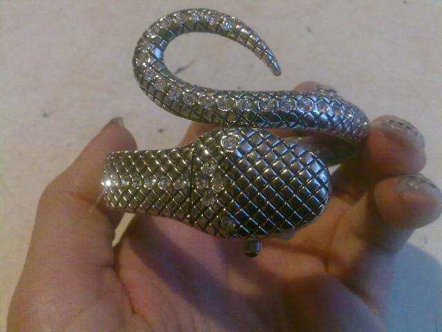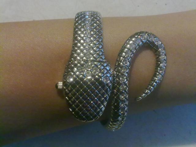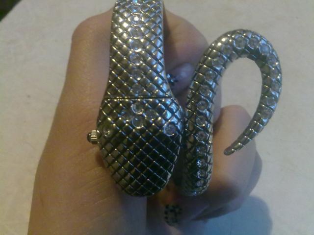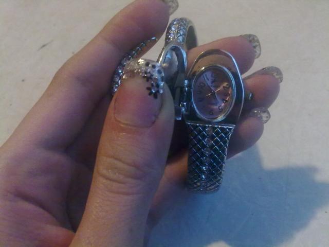 Labai grazi apyranke- laikrodis, su swarovski kristalais graziai atrodo ant rankos, moketa 22£ reikia pakeisti elementa ir per apyrankes sulenkima nuluzes vienas kabliukas, taciau tai netrugdo:)