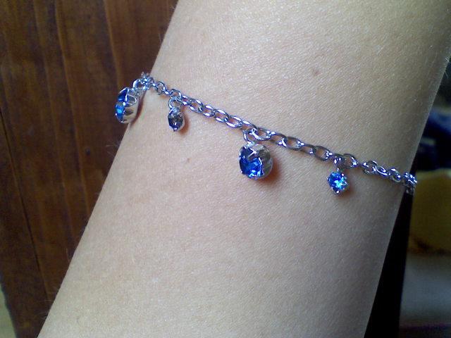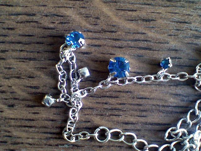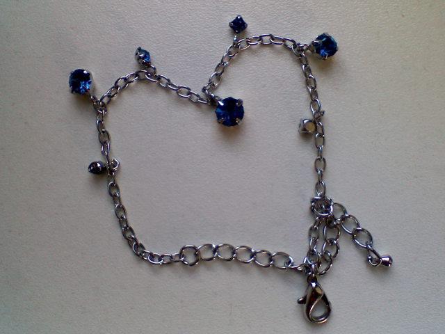 Nei karto nebuvau užsisegus. Gavau dovanų, bet niekur nepriderinau, taigi mainau :) Ilgis - 25,5cm; yra 7 mėlyni akmenukai.
