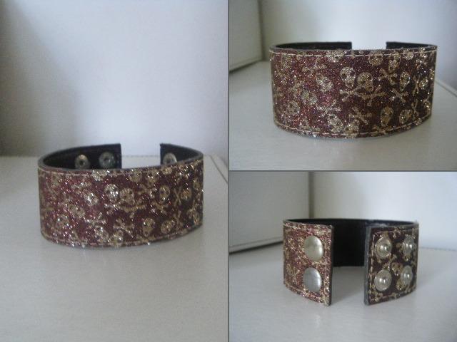 Ruda apyrankė su mažom auksinėm kaukolytėm.Dydis reguliuojasi.