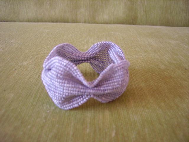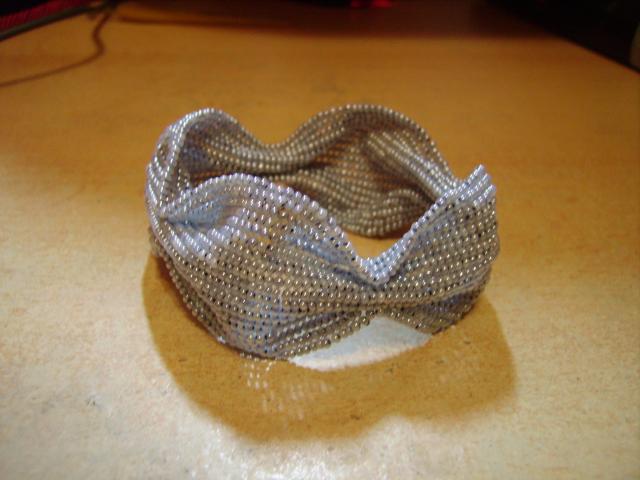 Smulkaus biserio apyrankė, spalva puikiai dera prie šviesaus džinso.