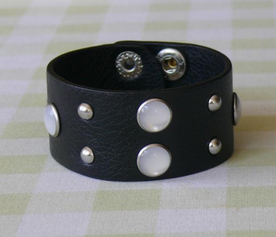Nauja, nenaudota apyrankė su kniedėmis ir matinėmis stikliukų akutėmis.