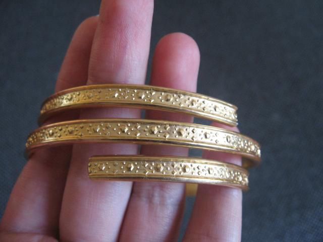 Auksinės spalvos apyrankė.
