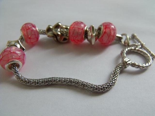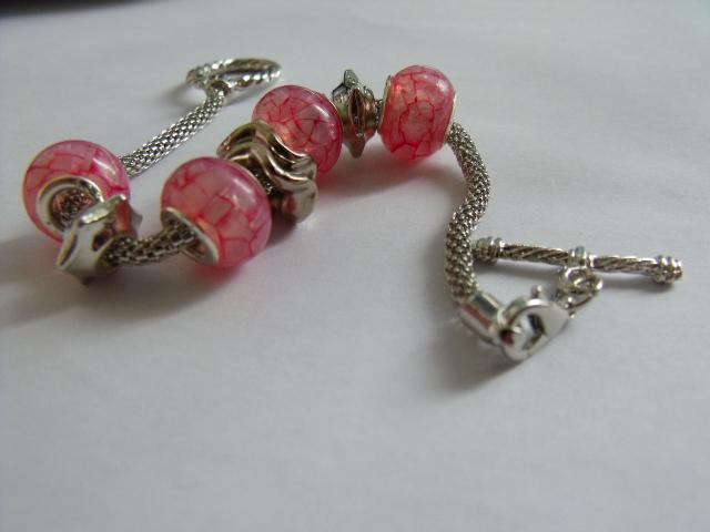 Grandinėlės ilgis 20-21cm, 4 rausvi karoliukai (pasidabruoti), ir trys sidabrinės spalvos karoliukai.